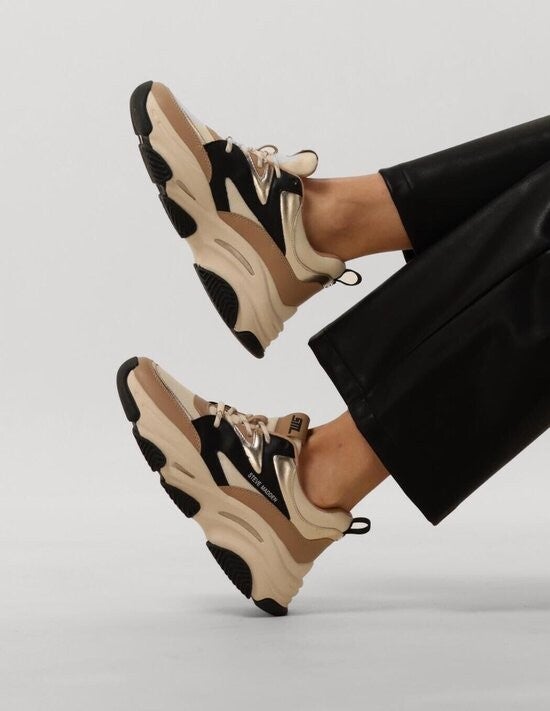Get Ready voor het nieuwste model Sneaker by Steve Madden! Artikel Progressive heeft een monochrome look en extra chunky zool. Makkelijk te combineren onder loose fit kleding bijvoorbeeld. De kleur van deze dad sneaker is khaki met bone en zwart in het leatherlook. De pasvorm valt normaal.