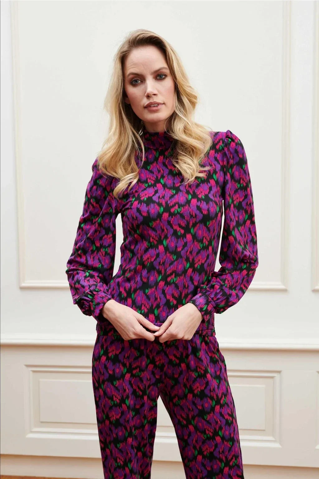 Deze top voor dames van Lofty Manner is gemaakt van een polyestermix en heeft een all over print. Het model heeft een col en lange mouwen.