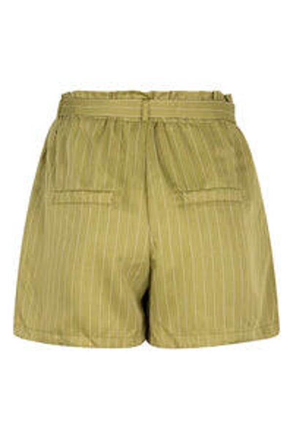 Short Giovanna is een groene paper bag short met afneembare riem en hook and eye sluiting. Het broekje heeft aan de achterkant elastiek voor een comfortabele pasvorm. Het rechte model met steekzakken en sierzakken aan de achterkant heeft een krijtstreep patroon en is als co-ord set te dragen met blazer Camila.