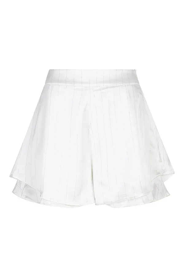 Short Anya is een korte witte broek met zebraprint. Het broekje heeft wijde broekspijpen met volantbaan, wat voor een speels en sierlijk effect zorgt. De short heeft aan de achterkant elastiek in de taille.