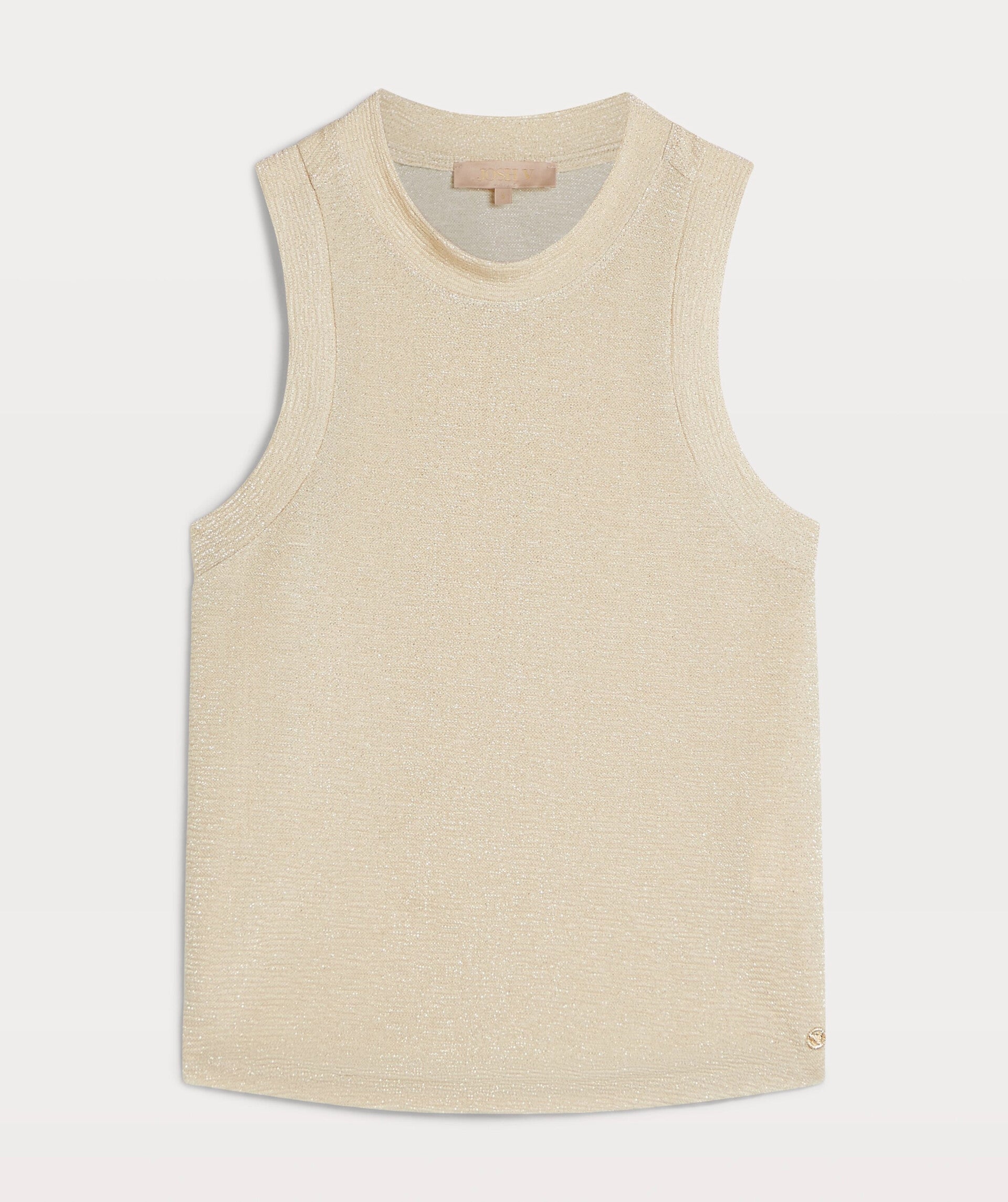 De JOSH V Dantey dames top in de kleur Gold is gemaakt van een semi-transparante kwaliteit met shiny lurex. Dit goudkleurige glittertopje draag je naar verschillende gelegenheden. Je draagt de haltertop bijvoorbeeld perfect tijdens jouw zomervakantie, maar ook kun je met dit topje een feestelijke of casual chic look creëren. Feestelijk in combinatie met een kokerrok en open heels en casual chic in combinatie met denim en sneakers. Deze gouden haltertop is onmisbaar in jouw Spring/Summer garderobe.